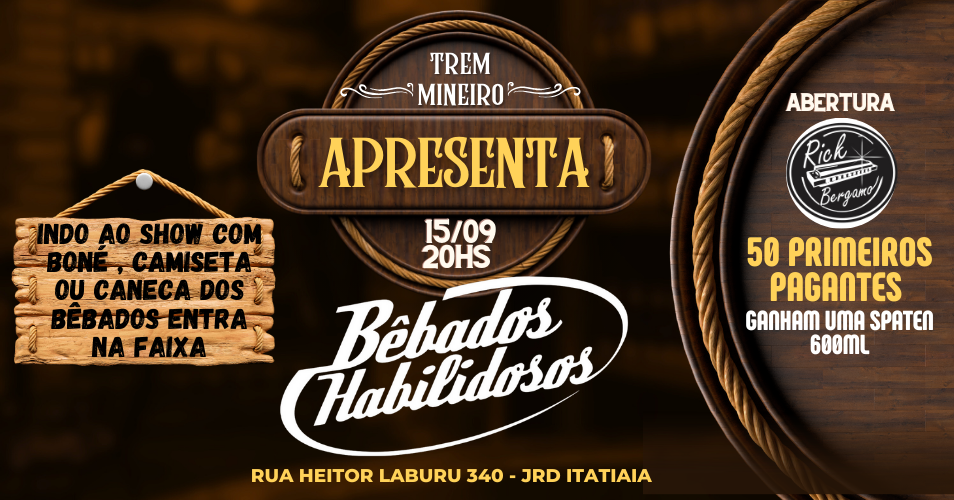 - Os Ingressos desta oferta são referentes à Bêbados Habilidosos;